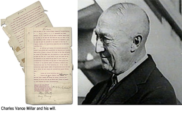 He was known for his practical jokes and his belief that everyone had a price to their ethics. A life long bachelor, he died of cerebral hemorrhage in his office at 59 Yonge Street in Toronto on 31 October 1926. It was after his death that Charles Millar became truly famous. Or infamous, depending on how you look at it.