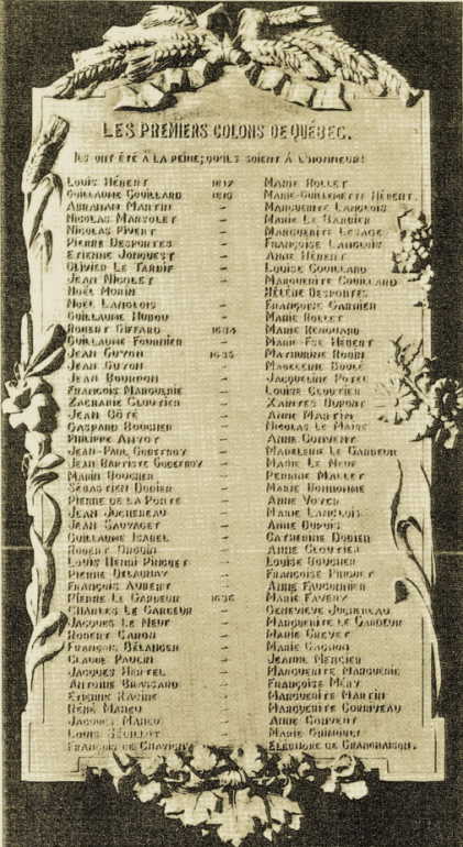 Louis, Marie and their children are on a plaque honoring the first settlers of Quebec. The plaque is located on the Hebert monument: