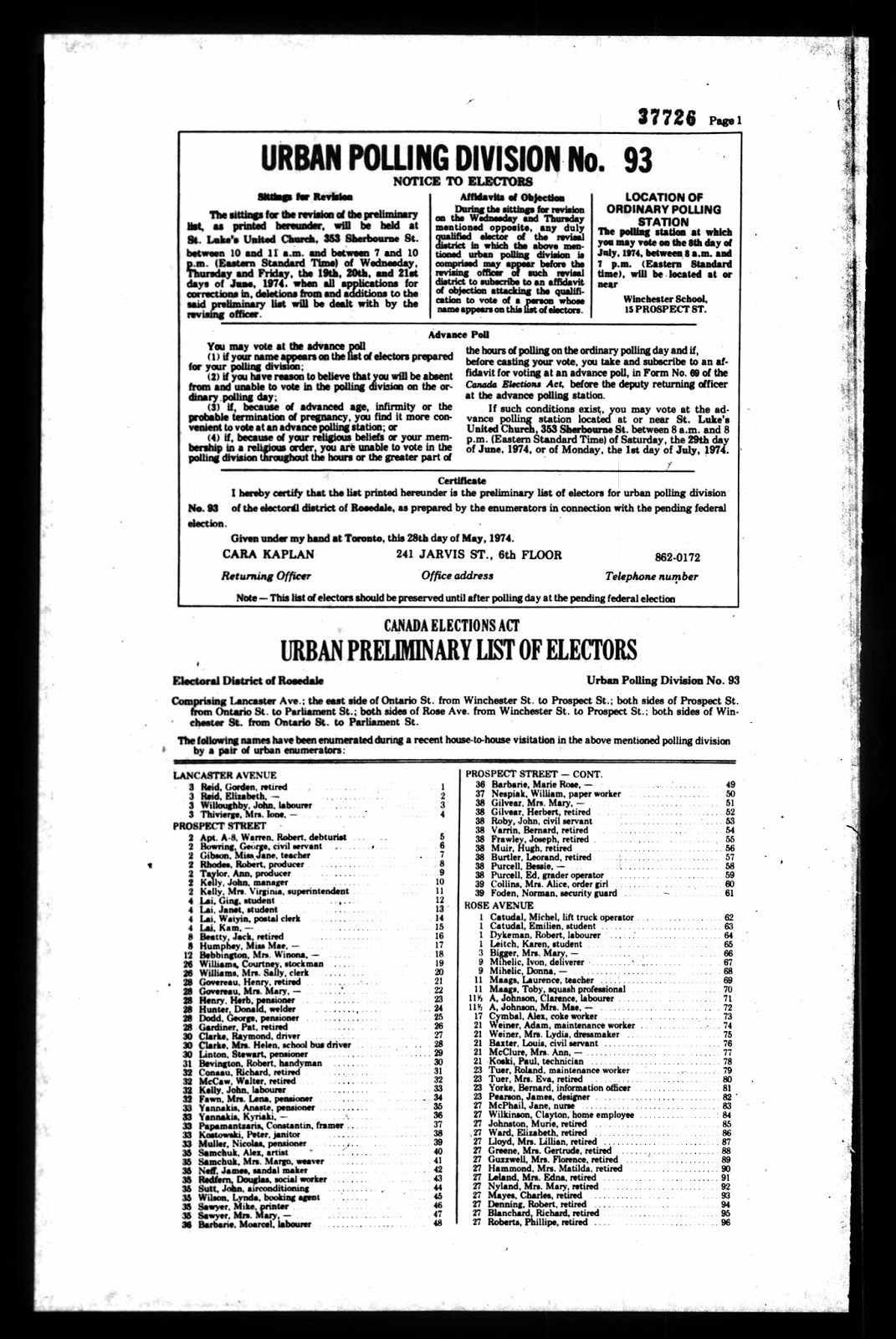 - Library and Archives Canada has a great overview on the Federal Voter\’s Lists and how to determine your ancestor\’s electoral district. They have the lists available on microfilm. By clicking on each year, you will get a chart that lists Province, electoral district, the page numbers for that district and the microfilm number. As well, they also have microfilms for the federal By-election years 1937-1983. See their guide on inter libray loan if you are not able to access onsite.