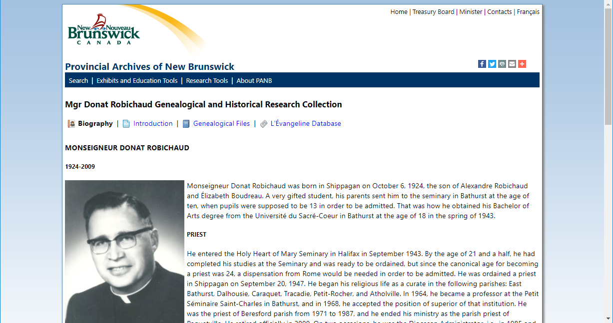 | http://archives.gnb.ca/Search/FatherRobichaudTranscriptions/BiographyDocuments.aspx?culture=en-CA |