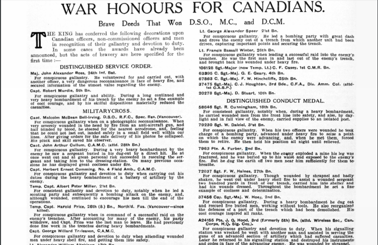 Even better than this, the wartime issues lists soldiers who received war honours, those wounded, those presumed missing, and those killed. Not just the officers either. You\’ll find lowly privates, corporals and sergeants too. The best part about the war honours entries is that they tell you the reason why these soldiers received their medal. Here\’s a few examples: