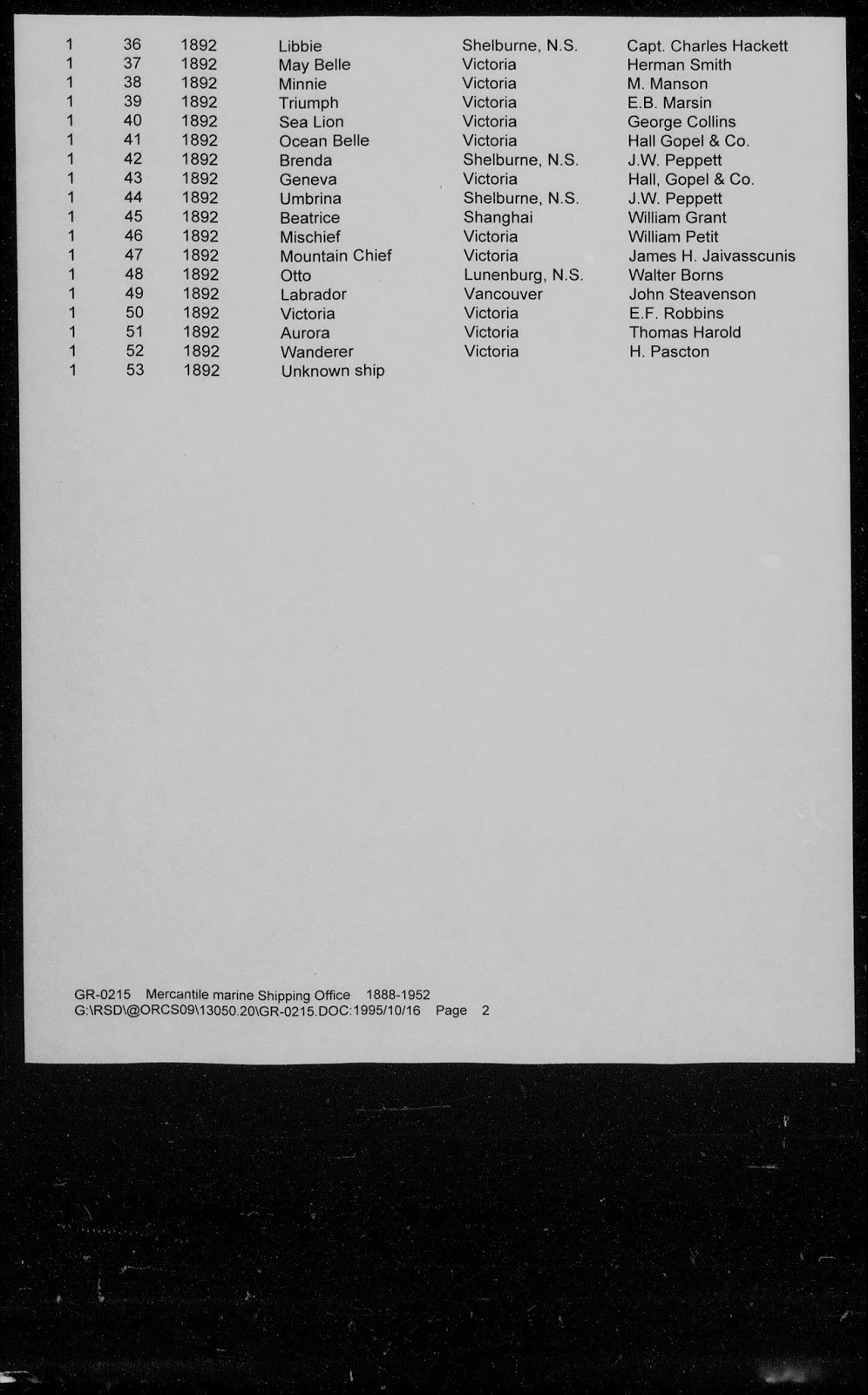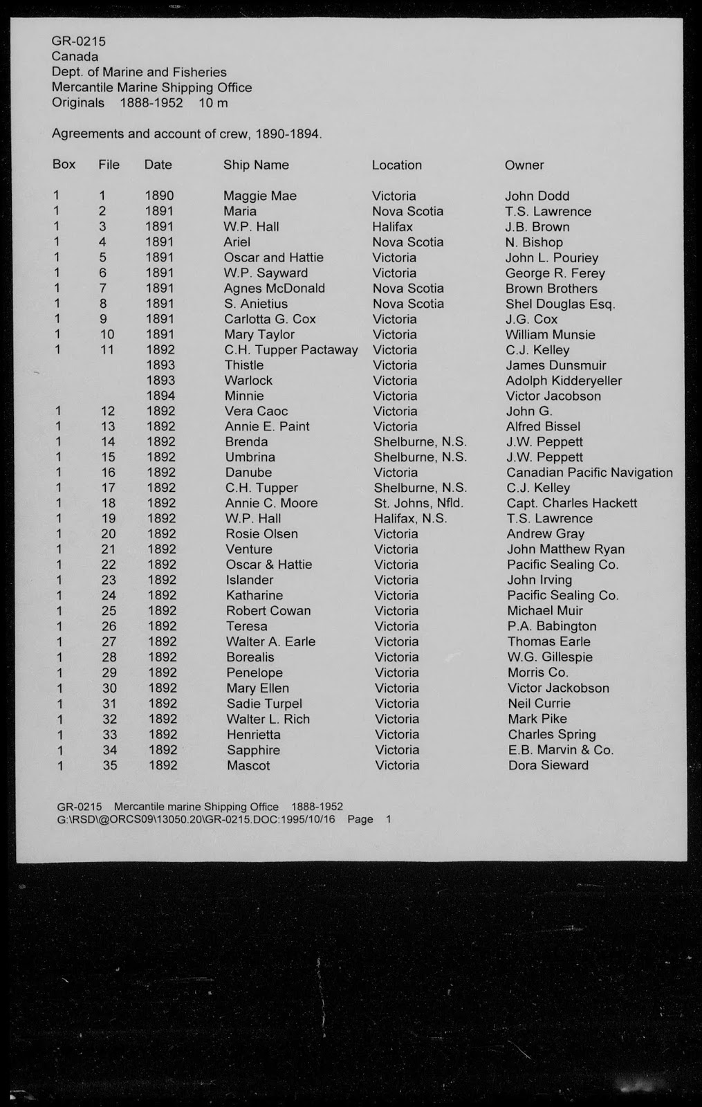 This collection is a browse only collection. This means that it is not indexed, so if you use the regular search engine, you will not get hits from here. According to the Wiki of the collection, it covers mainly ports in British Columbia, and mostly Victoria. However, you can find records from Nova Scotia, Newfoundland, and a few ports outside Canada.