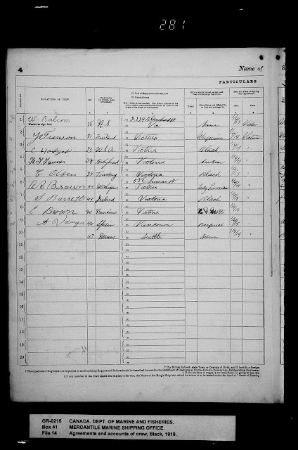 After the crew particulars, I also found some telegrams and correspondence linked with some of the ships. My maritime ancestor Dugald McArthur was a ship\’s cook and steward on Scottish vessels. His period of time sailing was before this collection starts, so I knew that there wouldn\’t be a chance of finding him in here at all. But it\’s quite an interesting read none the less. If your ancestor was connected to a particular ship for a long time, you\’re in luck. While scanning the indexes, I saw certain ships mentioned repeatedly, especially if Victoria, BC was their home port. It would be quite possible to trace decades of sailing for a particular vessel.