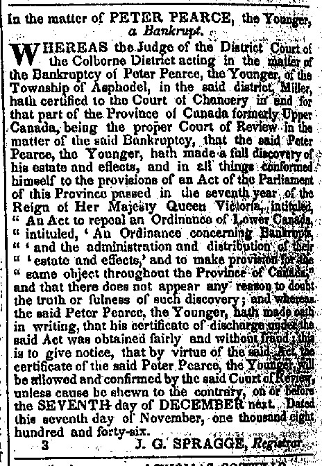 On the very same page is another notice discharging the bankruptcy of Peter Pearce.