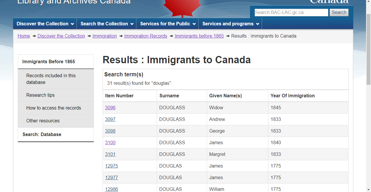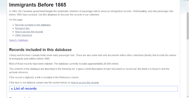 Week 42\’s prompt is \”adventure\”. I can think of no bigger adventure for someone than starting a new life in another country. So for this post I decided to look at one of the immigration databases on Library and Archives Canada\’s website, Immigrants Before 1865. There was no regulated system of recording immigration to Canada before 1865, and today there is only a hodge podge of surviving records. The LAC has put what they have together into one database on their website.