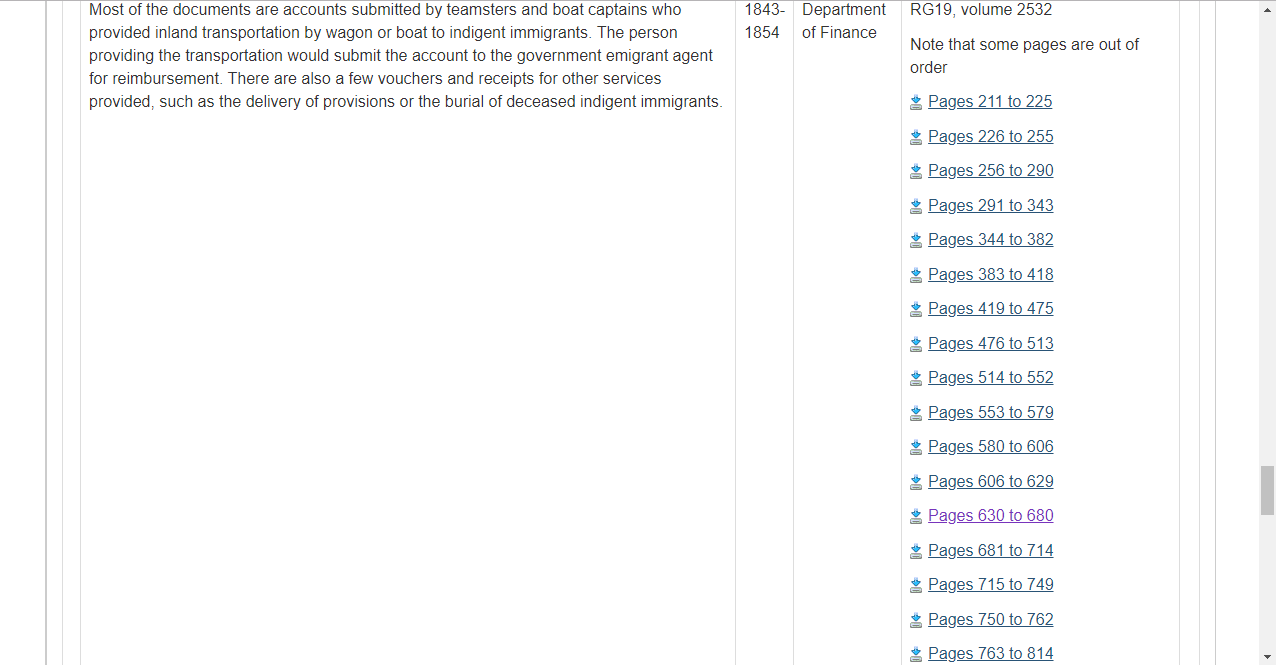 Since no PDF image is attached, I will have to check the main page\’s chart. Using the information from here, I then went back to the main page and looked on the chart for the record set that is part of the Department of Finance fonds. It turns out it is the last record set. Luckily this set is digitized.