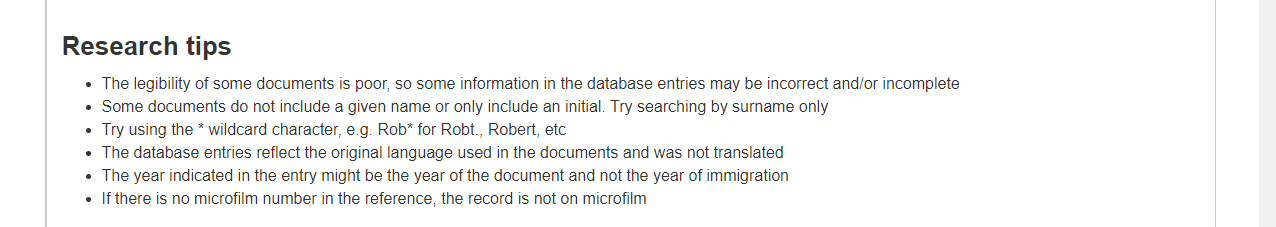Though it looks like digital images can be accessed for most of the records, there are a few that no images are available online. You have to the option of visiting onsite, or you can order a copy of the record. Scroll to the bottom of the database\’s main information page for the link to order copies. The LAC also gives these research tips on their site:
