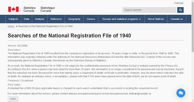 War Measures Act. They are held by Statistics Canada. Between 1940 and 1946, every person over the age of 16 was required to register. The only exception were people: