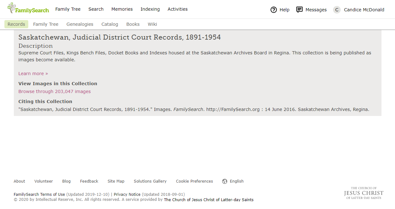 The collection has over 200,000 images. The title says it covers from 1891-1954. However, I only saw up to 1935 in the subsection titles. You want to first select your Judicial District. The only one shown is Regina. Because of this and the year range in the title, I\’m assuming that they plan to add to this collection in future.