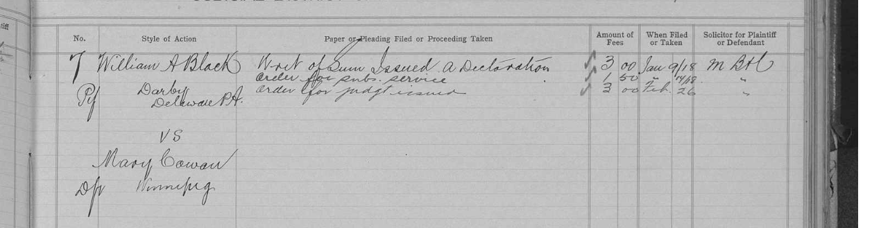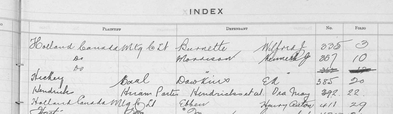 - Supreme Court files, 1907, files 150-266 (Archives file no 11600-11717)