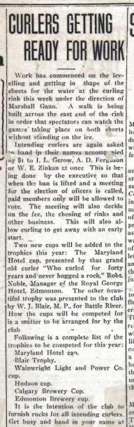 Here\’s a third, that appeared on the same page as an influenza article in 1918. This one tells about how the local curling club is getting ready for a new season.
