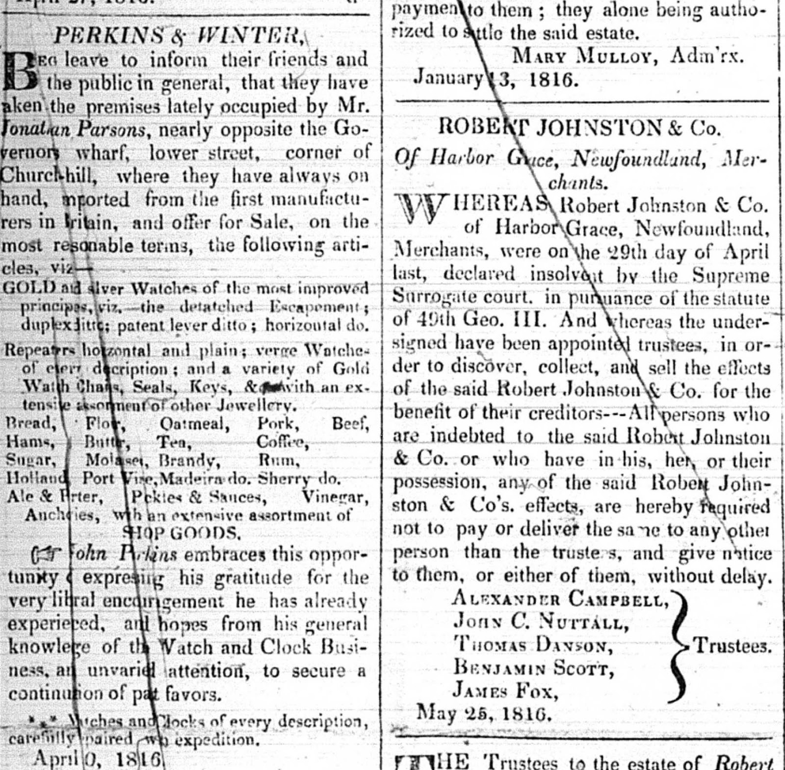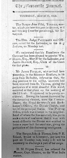 - Newfoundland Mercantile Journal Earliest issue located: Sept. 11, 1816 (no. 108). – Last issue located: June 7, 1827 (376 issues)