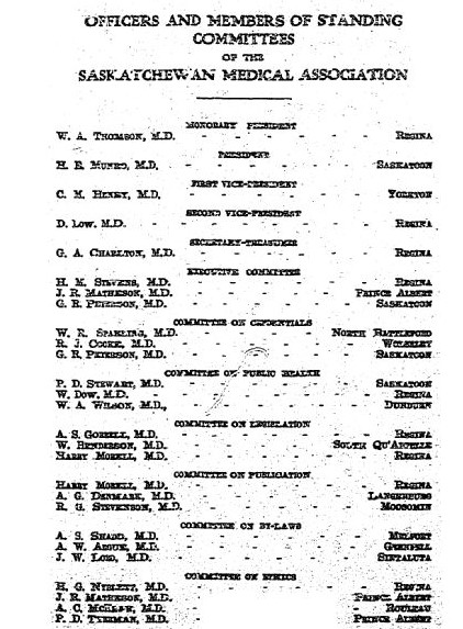 And here\’s the Officers and Committee Members of the Saskatchewan Medical Association