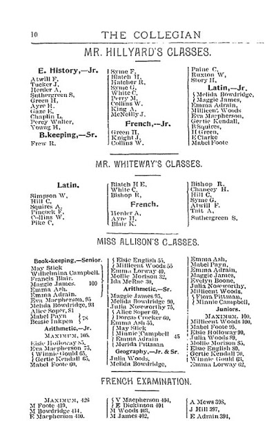 Covering the year 1897, this publication was aimed at Methodist schools. It is interesting in that it lists faculty and students in the publication. Here\’s a list of the 10 best exam remarks in various classes. It even shows the score for some. A nice little insight into your ancestor\’s academic achievements!