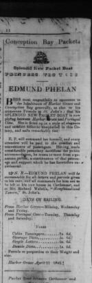 A Protestant conservative leaning newspaper, it featured both local and foreign news. It was geared towards businessmen. Among the images you\’ll find news on shipping, government, and agriculture. It was also heavy on advertisements and notices. Here\’s one about the new packet boat, The Edmund Phelan