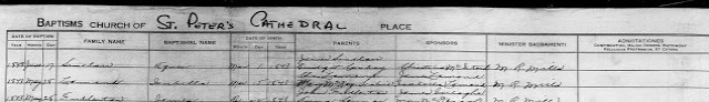 Here\’s an example of baptisms from St. Peter\’s Cathedral in London, Middlesex County dated for May and June 1843