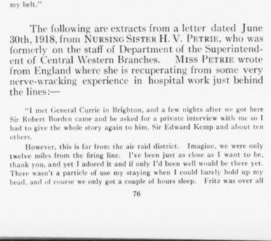 Here\’s an entry for nursing sister H V Petrie, who worked for the CIBC at the offices overseeing Western Canada