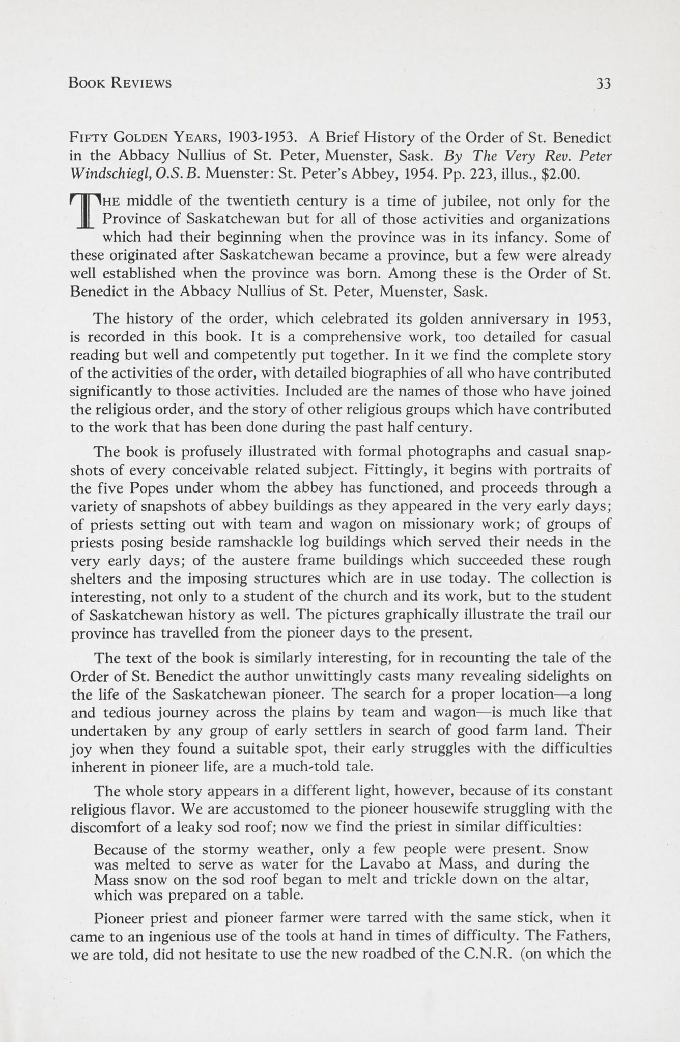 There were also book reviews on the latest history books written about the province. This can give you new avenues of research to track down. Here\’s a review on Fifty Golden Years. A Brief History of the Order of St. Benedict in the Abbey Nullius of St. Peter, Muenster, Sask (Winter 1955 issue)
