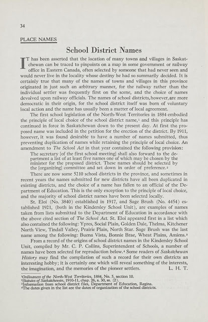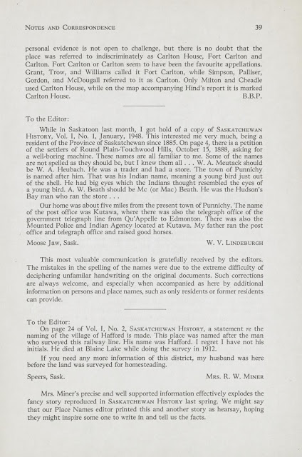 And here\’s a useful article on how Saskatchewan Places got their names (Winter 1950 issue). This section appeared regularly in the magazine