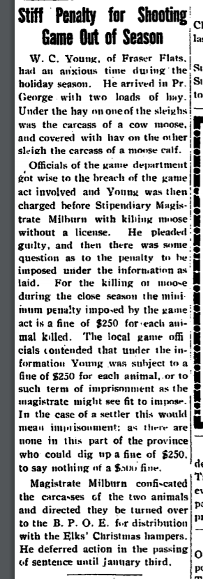 W C Young got into some trouble in December 1934 for shooting game out of season