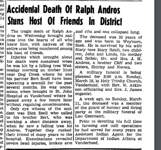 As a last example, here\’s an article on the accidental death of Ralph Andros from March 1956