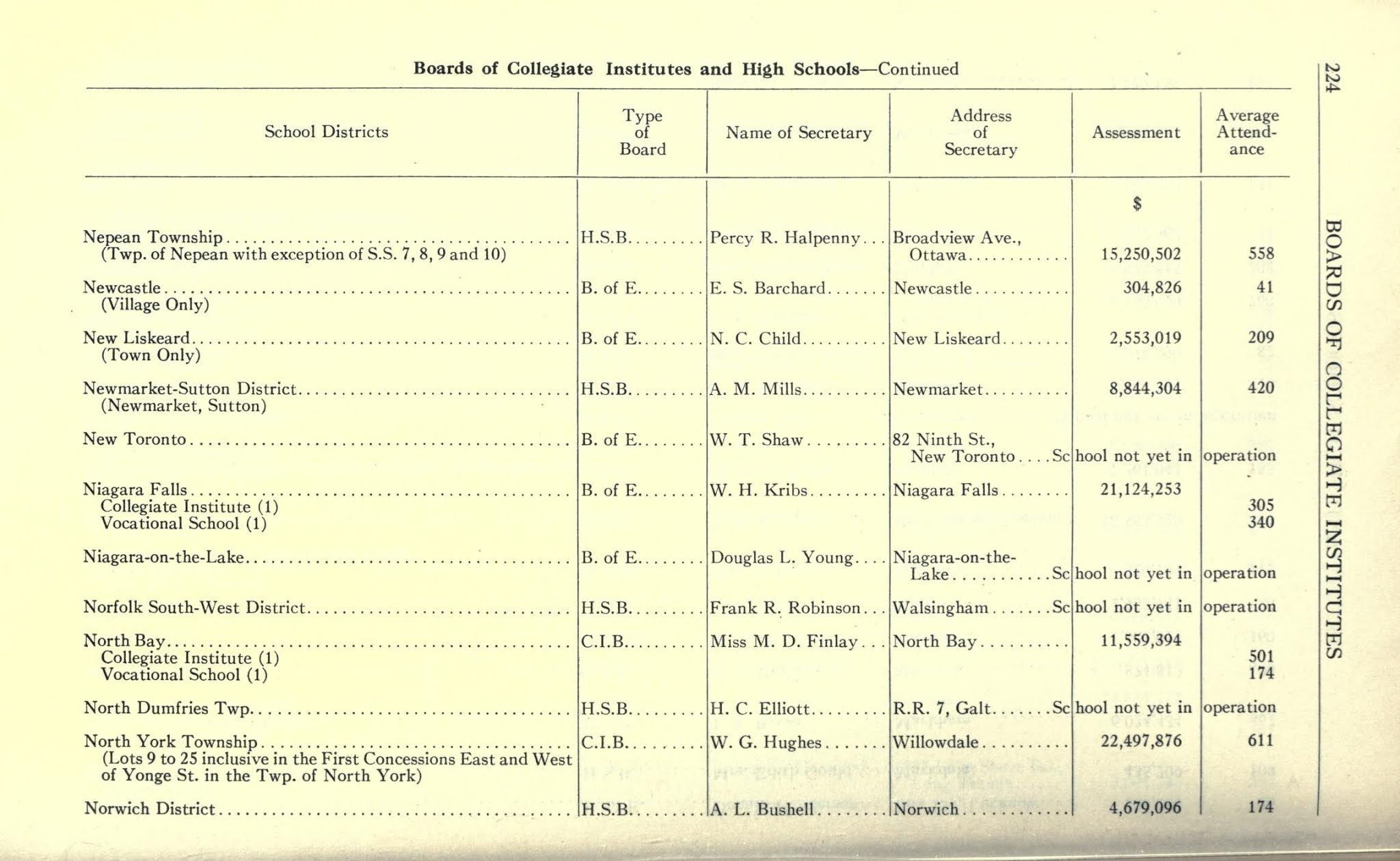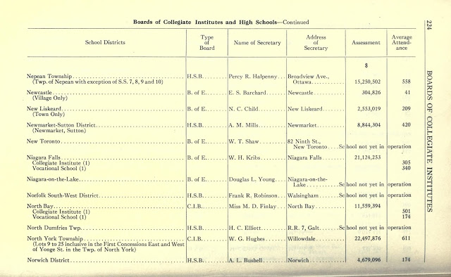 Similar to City and County Directories, these publications were put out by the Ontario Department of Education. Internet Archive by no means has a complete collection, but they range from as early as 1911 and as late as the 1950\’s. What a gold mine of information these can contain on your ancestor! Take a look at this page for principals and assistants for Lindsay, Ontario in 1931