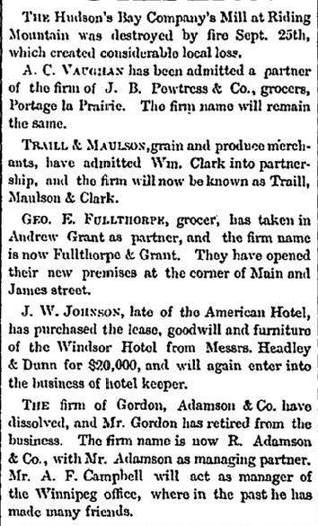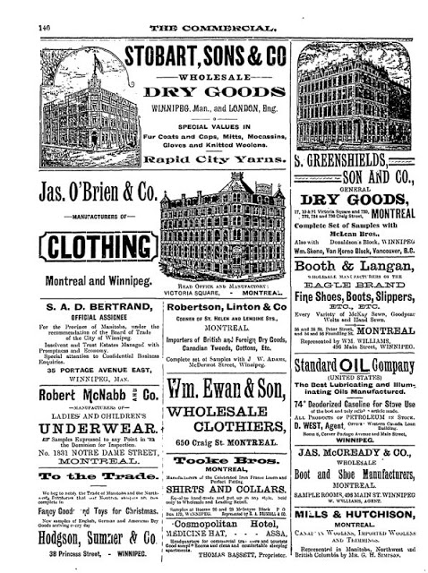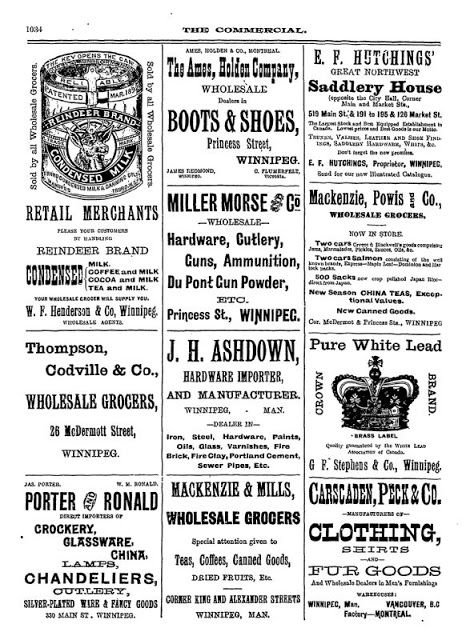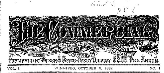 Records for your ancestor\’s personal life are the back bone of genealogy research. Looking into their professional life can be harder. If they were in public service, such as law or politics, there are many sources that are a matter of public record. Business owning ancestors don\’t leave as much behind. Of course, if your connection is to the Christies, Redpaths, Molsons, Bombardiers, or Ganongs, then no problem. These iconic Canadian business families have mention everywhere. But what if your ancestor was a smaller business owner? If they lived in Manitoba in the late 1800\’s, then you should look through the pages of The Commercial. You can find over 1000 issues on Canadiana. Geared toward business owners, they stated that they were \”A journal devoted to the financial, mercantile and manufacturing interests of the Canadian North-west.\”