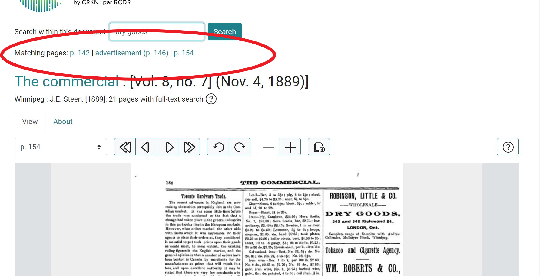 As you can see above, you can also search keywords within a document. I used dry goods\” and it told me which pages I could find that phrase. Just click on the page number and it will take you to that page. Keep in mind though that the keywords won\’t be highlighted.