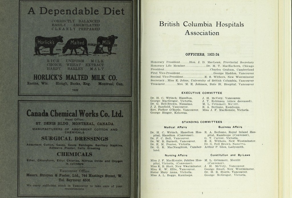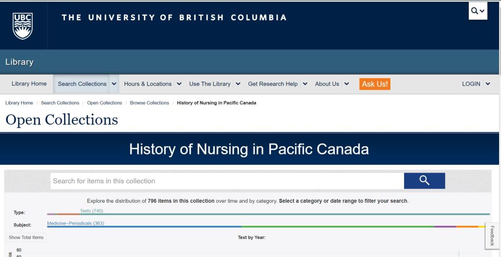 The Collection is a collaboration with the UBC, the Consortium for Nursing History Inquiry at the University of British Columbia School of Nursing, and the B.C. History of Nursing Society. It’s a work in progress, with almost 800 digitized items in the Collection currently. Among the items you can view are moving images, still images, and textual records. For the purpose of the bog post, I’m just going to concentrate on the textual records.