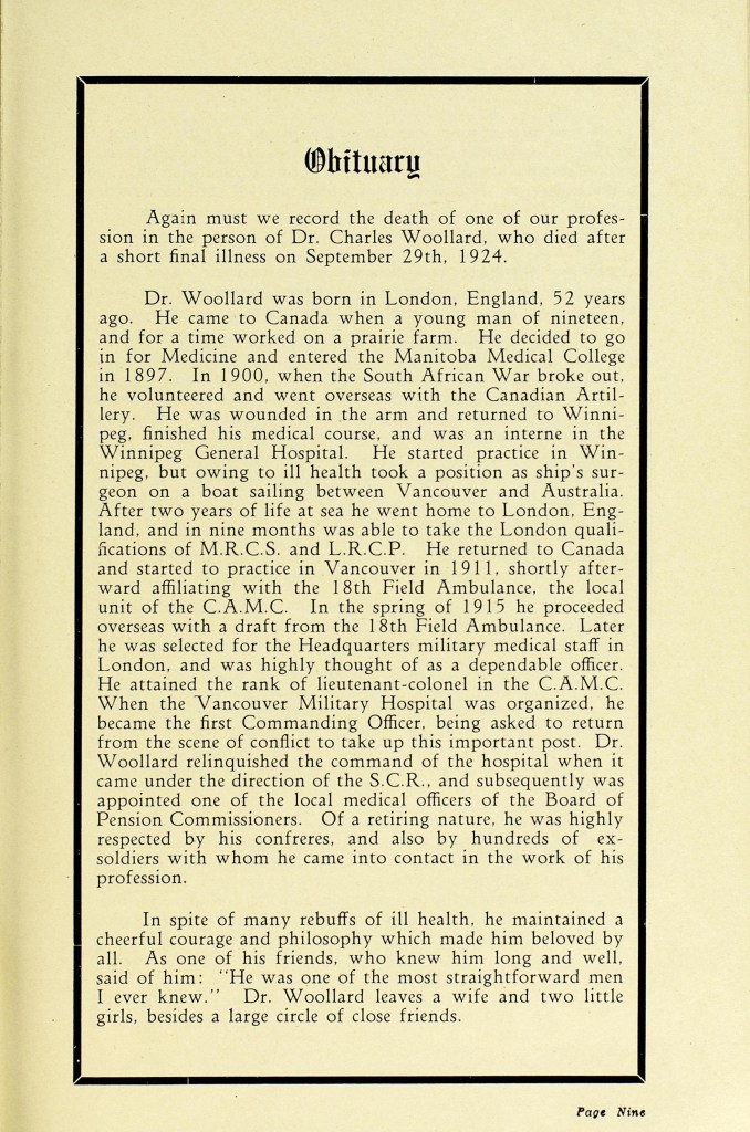 And just look at this obituary in November 1924 for Dr. Charles Woollard